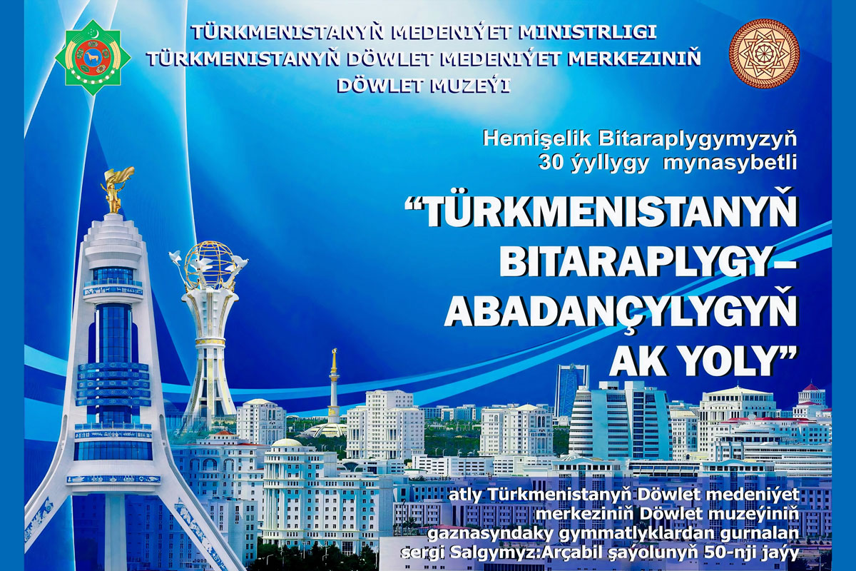 Türkmenistanyň Döwlet medeniýet merkeziniň Döwlet muzeýi 2025-nji ýylyň 9-njy dekabrynda sagat 10:00-da Hemişelik Bitaraplygymyzyň 30 ýyllyk baýramçylygy mynasybetli «Türkmenistanyň Bitaraplygy–abadançylygyň ak ýoly» atly gurnalan serginiň açylyş dabarasyna çagyrýar.
