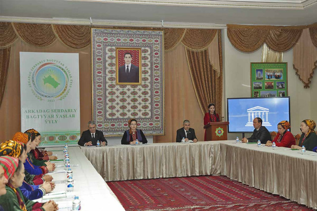 30.03.2023Şu gün 30-njy martda Türkmenistanyň Medeniýet ministrliginiň Maddy däl medeni miras müdirligi tarapyndan Türkmenistanyň Beýik Saparmyrat Türkmenbaşy adyndaky şekillendiriş sungaty muzeýinde senetçilik önümleriniň sergisi we duşuşyklary guramak işleri geçirildi.