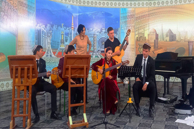 07.11.2023Ýakynda Ahal welaýat ýörite sungat mekdebinde Aşgabat we Arkadag şäherleriniň, ýurdumyzyň Balkan, Lebap, Mary, Daşoguz ýörite sazçylyk we sungat mekdepleriniň «Üflenip we kakylyp çalynýan saz gurallary» bölümi boýunça ders berýän mugallymlar üçin «Okatmagyň usulyýetini kämilleşdirmek sungat-pedagogik işgärleriniň mukaddes borjudyr» atly okuw-usulyýet maslahaty geçirildi.