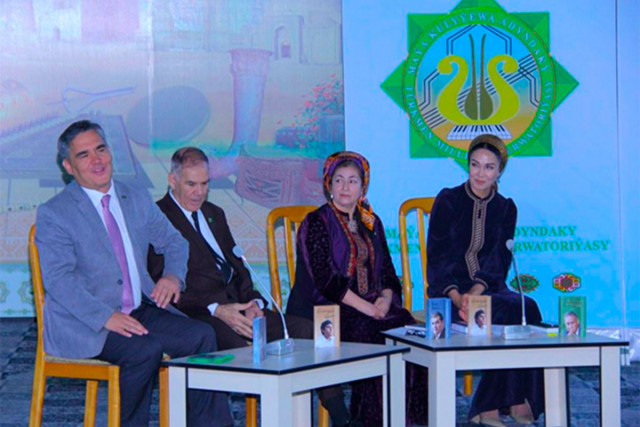 28.10.2024Ýakynda Maýa Kulyýewa adyndaky Türkmen milli konserwatoriýasynda «Pähim-paýhas ummany Magtymguly Pyragy» ýylynda ýaşlarda kitaba bolan söýgüni artdyrmak, Gahryman Arkadagymyzyň ýiti galamyndan syzylyp çykan ajaýyp kitaplarynyň üsti bilen watansöýüji, kämil bilimli talyp ýaşlary milli ruhda terbiýelemek, olarda mirasa bolan sarpany, zähmete söýgini döretmek maksady bilen «Gahryman Arkadagymyzyň kitaplary ýaşlara ýol-ýörelge» atly duşuşyk we kitap sergisi geçirildi.