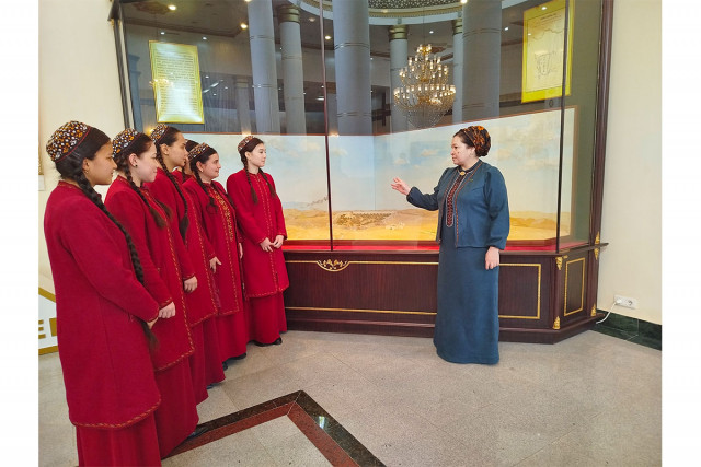 20.03.2025Lebap welaýatynyň Taryhy we ülkäni öwreniş muzeýiniň gaznasynda saklanýan milli gymmatlyklardan we milli mirasymyzy şöhlelendirýän gymmatlyklarymyzdan Lebap welaýat maliýe–ykdysady orta hünär okuw mekdebinde göçme sergi gurnaldy.
