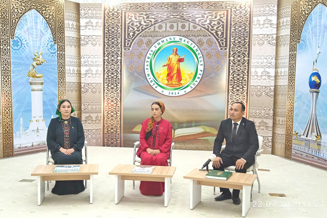 24.07.2024Aşgabat şäher medeniýet müdirliginiň Merkezleşdirilen kitaphanalar ulgamynyň, «Türkmenhaly» Döwlet birleşiginiň Türkmen halysynyň milli muzeýiniň bilelikde guramagynda «Milli mirasymyzyň şuglasy» ady bilen söhbetdeşlik geçirildi.