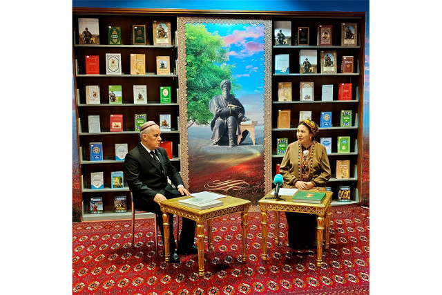 18.07.2024Döwletmämmet Azady adyndaky Arkadag şäher kitaphanasynyň we «Arkadag» teleýaýlymynyň bilelikde guramaklarynda «Pähim-paýhas ummany» atly söhbetdeşlik geçirildi.