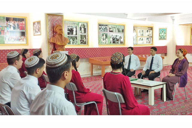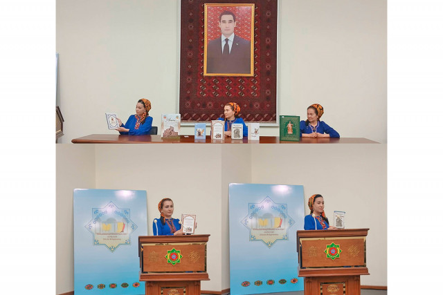 21.06.2024Aşgabat şäher medeniýet müdirliginiň Merkezleşdirilen kitaphanalar ulgamynyň «Mollamurt» adyndaky kitaphana şahamçasy bilen Maýa Kulyýewa adyndaky Türkmen milli koserwatoriýasynyň bilelikde guramagynda «Türkmen medeniýeti dünýä ýol açýar» ady bilen wagyz-nesihat çäresi geçirildi.