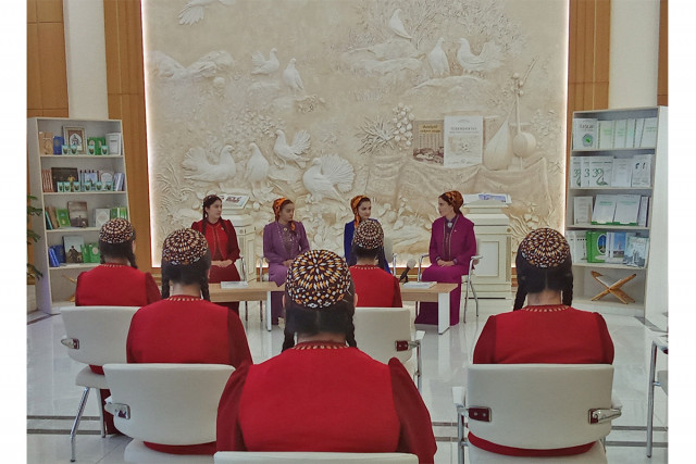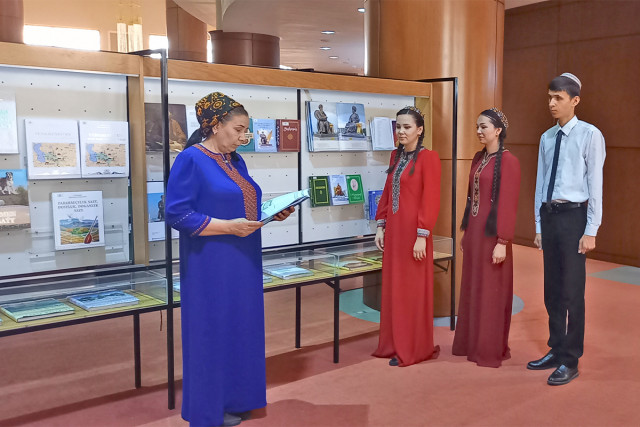 15.05.2024Türkmenistanyň B.Amanow adyndaky Döwlet çagalar kitaphanasynyň kalga otagynda ýakynda «Baýdagyň belentdir dünýäň ýüzünde» atly Türkmenistanyň Konstitusiýasynyň we Döwlet baýdagynyň gününe bagyşlap okyjylaryň arasynda gürrüňdeşlik geçirildi.