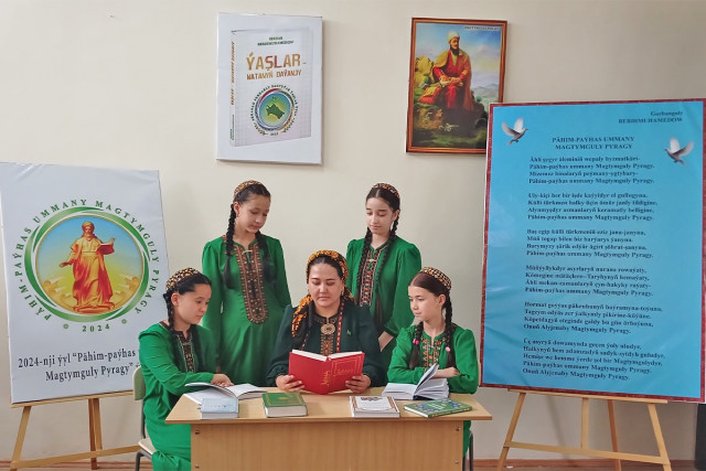 06.05.2024Aşgabat şäher medeniýet müdirliginiň Merkezleşdirilen kitaphanalar ulgamy, Türkmenistanyň Medeniýet, sport, syýahatçylyk we Jemgyýetçilik guramalarynyň işgärleriniň Kärdeşler arkalaşygynyň Geňeşi bilen bilelikde guramagynda Magtymguly Pyragynyň doglan gününiň 300 ýyllygy mynasybetli «Magtymguly Pyragy türkmen şygryýetiniň zergäri» ady bilen gürrüňdeşlik geçirildi.