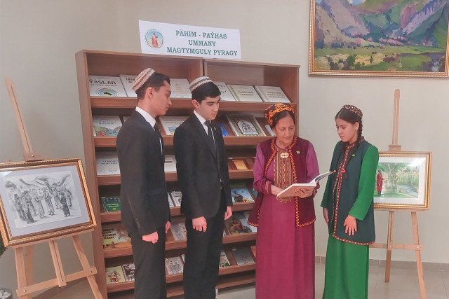 27.04.2024Aşgabat şäher medeniýet müdirliginiň Merkezleşdirilen kitaphanalar ulgamynyň Garadamak şäherçe kitaphana şahamçasy, Aman Kekilow adyndaky mugallymçylyk mekdebiniň bilelikde guramagynda Magtymguly Pyragynyň doglan gününiň 300 ýyllygy mynasybetli «Magtymguly Pyragy – şygryýetiň çyragy» ady bilen wagyz-nesihat çäresi geçirildi.