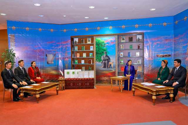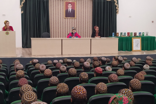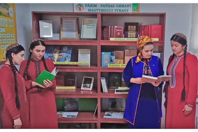 28.02.2024Türkmenistanyň Magtymguly adyndaky Ýaşlar guramasynyň Merkezi Geňeşiniň gurnamagynda Türkmenistanyň Döwlet medeniýet merkeziniň Döwlet kitaphanasy bilen bilelikde Gündogaryň beýik akyldary we nusgawy şahyry Magtymguly Pyragynyň doglan gününiň 300 ýyllygy mynasybetli