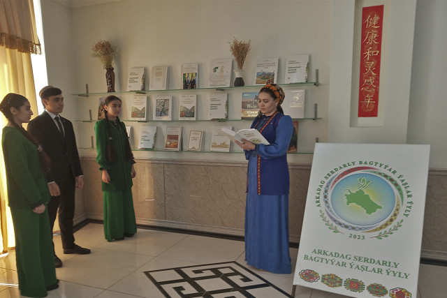 01.03.2023Aşgabat şäher medeniýet müdirliginiň Merkezleşdirilen kitaphanalar ulgamynyň Durdy Gylyç adyndaky kitaphana şahamçasy, 130-njy ýöriteleşdirilen orta mekdebi bilen bilelikde gurnamagynda “Jahana çykaryp ýaşlaryň sesin, Baýdak deý göterip ýurt mertebesin” ady bilen wagyz-nesihat çäre geçirildi.
