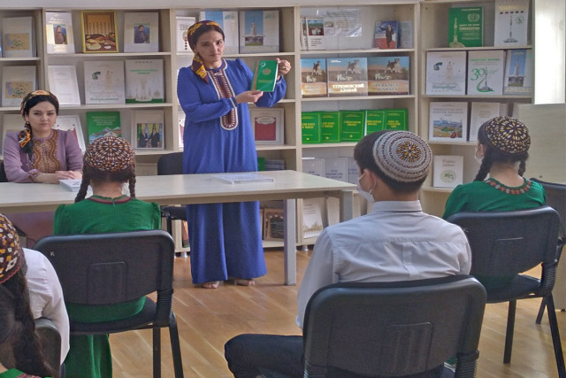 19.05.2022Aşgabat şäher medeniýet müdirliginiň Merkezleşdirilen kitaphanalar ulgamynyň Gurbannazar Ezizow adyndaky kitaphana şahamçasynyň gurnamagynda 132-nji orta mekdepde “Ýaşyl tugum-parahatlyk baýdagy” ady bilen wagyz-nesihat çäresi geçirildi.