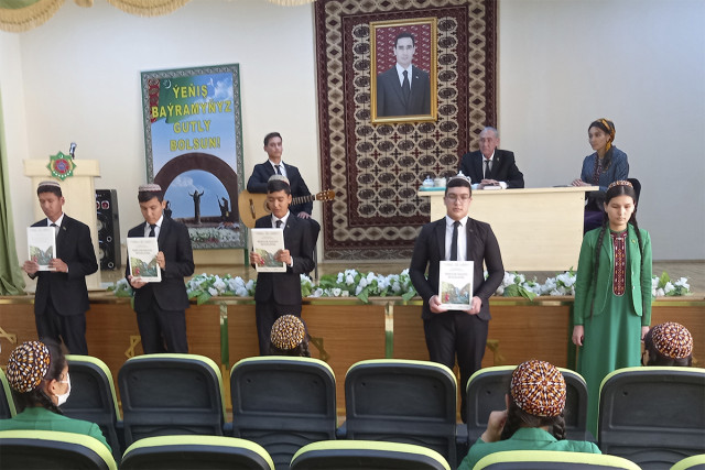 06.05.2022Aşgabat şäher medeniýet müdirliginiň Merkezleşdirilen kitaphanalar ulgamynyň Aman Kekilow adyndaky kitaphana şahamçasy bilen 50256-njy harby bölümiň bilelikde gurnamagynda Gahryman Arkadagymyzyň “Ömrümiň manysy” atly täze kitabynyň tanyşdyrylyş dabarasy geçirildi.