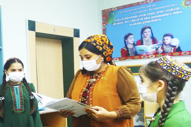 06.12.2021Türkmenistanyň B.Amanow adyndaky döwlet çagalar kitaphanasy Aşgabat şäheriniň ýöriteleşdirilen 132-nji orta mekdebi bilen bilelikde “Gyz-gelinleriň ýaraşygy keteni”