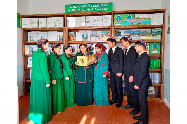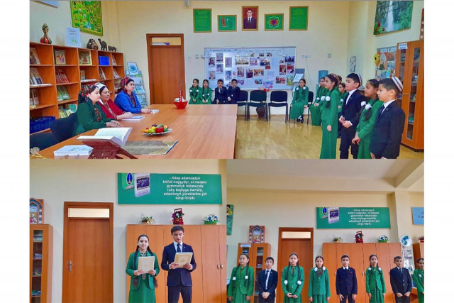 10.03.2025Türkmenistanyň Bazar Amanow adyndaky Döwlet çagalar kitaphanasy ýakynda gözel paýtagtymyzda ýerleşýän 76-njy ýöriteleşdirilen orta mekdebiniň kitaphanasynda «Edep-terbiýe ynsan bezegi» atly