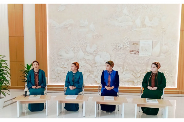 18.02.2025Aşgabat şäher medeniýet müdirliginiň Merkezleşdirilen kitaphanalar ulgamynyň Ata Gowşudow adyndaky kitaphana şahamçasy, Aman Kekilow adyndaky mugallymçylyk mekdebiniň bilelikde guramagynda «Medeni mirasymyz–ruhy baýlygymyz» ady bilen aýdym-sazly söhbetdeşlik geçirildi.