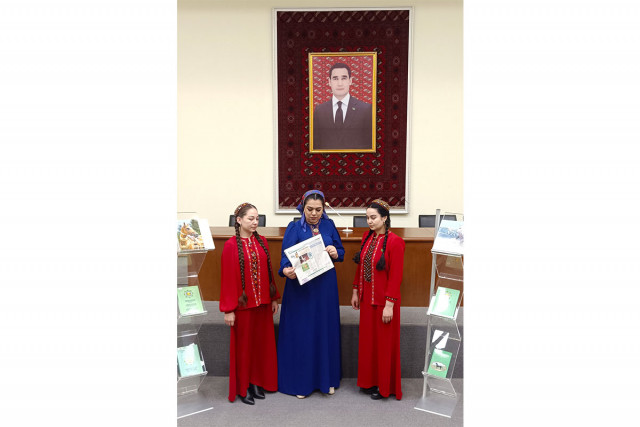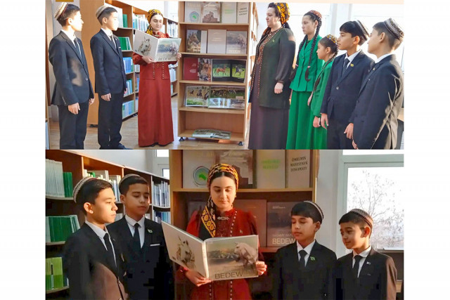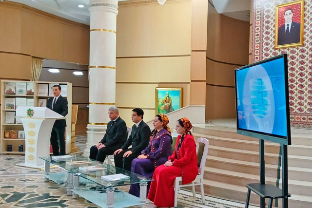 03.02.2025Ahal welaýat kitaphanasynyň gurnamagynda Hormatly Prezidentimiziň ýaňy-ýakynda Ministrler Kabinetiniň sanly ulgam arkaly geçiren nobatdaky mejlisinde kabul eden «Türkmenistanyň kitaphana ulgamyny ösdürmegiň 2025-2029-njy ýyllar üçin Döwlet maksatnamasyny» tassyklamak hakynda gol çeken Kararyna bagyşlap