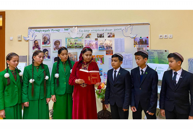 26.11.2024Türkmenistanyň Bazar Amanow adyndaky döwlet çagalar kitaphanasy ýaňy-ýakynda Aşgabat şäheriniň 76-njy orta mekdebinde Türkmenistanyň halk bagşysy Magtymguly Garlynyň (Çuwal bagşy) doglan gününiň 135 ýyllygyna bagyşlap