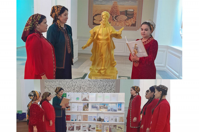 21.11.2024Türkmenistanyň Döwlet medeniýet merkeziniň Döwlet kitaphanasynyň Seýrek neşirleri bölümi hem-de Türkmenistanyň Ylymlar akademiýasynyň merkezi Ylymy kitaphanasy bilen bilelikde gurnamagynda «Pähim-paýhas ummany Magtymguly Pyragy» ýylymyza bagyşlap «Arzuwlan zamanaň geldi Pyragy» ady bilen tegelek stoluň başynda söhbetdeşlik geçirildi.