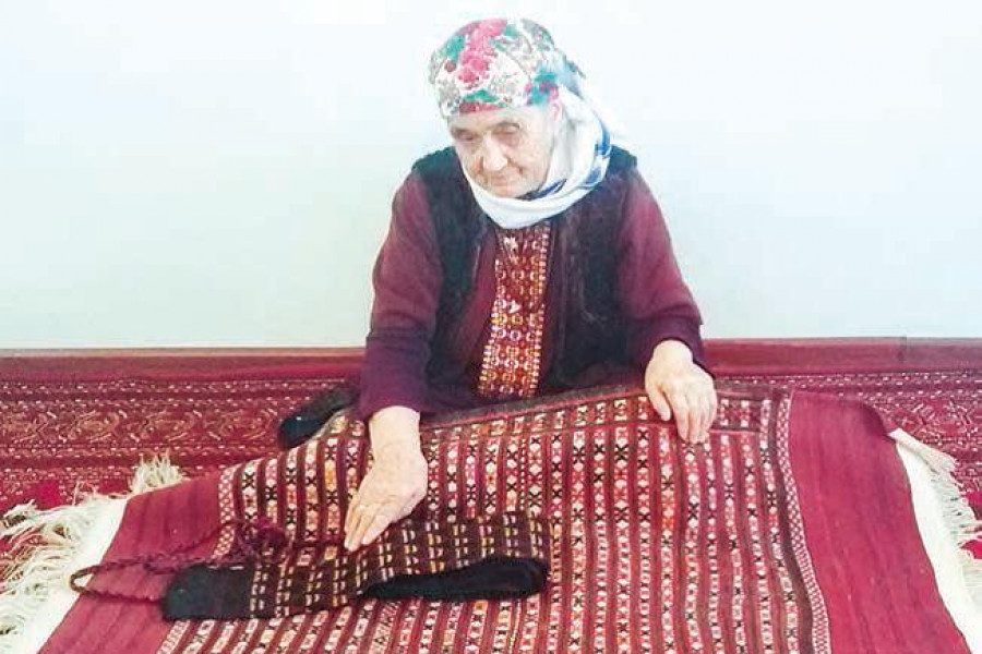 Milli mirasymyzy toplamak, öwrenmek maksady bilen Ahal welaýatynyň Gökdepe etrabynyň Türkmenistan geňeşliginde ýaşaýan, 80 ýaşy arka atan Täjigül daýzalara baranymyzda, ol şeýle gürrüň berdi: «Balam, türkmeniň milli mirasy gaty gymmatly zatdyr, özüm hem tä gözüm kütelişýänçä haly, palas, kilim dokap, jorapdyr ellik örüp, gaýma gaýapdym. Heniz ýaşajyk gyzjagaz wagtymyz ejem ýanynda oturdyp, el işlerini öwrederdi. Türkmen zenanlary işeňňirdir. Çagalaryny terbiýeläp, öý işlerine-de ýetişýär» diýdi-de, ylgapjyk ýören agtygyna ýüzlenip, «Bar, balam, ol otagda duran bilguşagy getir» diýdi. Getirilensoň bu gülli bilguşagyň gaýynenesinden miras galandygyny aýtdy. Üstünden ýarym asyr geçen bilguşak mizemän duran eken. Täjigül daýza biraz salymdan «Ejemiň dokan sallançak kilimi hem bardyr» diýip, ol otagda duran sallançak kilimini hem getirtdi. Onuňam üstünden esli wagt geçendigine garamazdan, täze dokalan ýaly ýalpyldap durdy. Bu sallançak kilimine «gülýaýdy», «atanak», «körbeýni» ýaly nagyşlar salnyp dokalypdyr. Hormatly Prezidentimiziň «Türkmen medeniýeti» atly kitabynda sallançak kilimi barada şeýle diýilýär: «Sallançak kilim täze dünýä injek çaga niýetlenip, ýörite dokalýar. Onuň ulanylyp başlanmagy hem dabaraly dessurlara beslenýär. Munuň üçin köp çagaly, abraýly, döwletli zenana täze düşegi sallançaga düşedýärler. «Gözden-dilden gorasyn» diýen yryma eýerilip, oňa ýörite işilen alaja ýüp dakylýar».