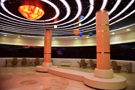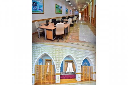 Kitaphananyň üçegi häzirki zaman tehniki enjamlar bilen enjamlaşdyrylan açylyp-ýapylýan gümmez bolup, ol ýerde obserwatoriýa üçin niýetlenilen iş otagy hem-de häzirki zaman kompýuter otagy göz öňünde tutulan. Bu ýerde Germaniýa Federatiw Respublikasynda öndürilen teleskop enjamy oturdylan. Obserwatoriýa otagynda teleskopyň we kompýuterleriň kömegi bilen asman giňişligini synlamak mümkinçiligi döredilen. Kitaphanasynda obserwatoriýanyň hereket etmegi bu sebitde fiziki, astronomiýa, geografiýa we geofizika, asman giňişligini öwrenmek ugurlarynyň nazaryýetine, tejribe işine gyzyklanmany has artdyrýar. Bu ýerde Germaniýa Federatiw Respublikasynyň önümi bolan “Alt-Azimutly Kassegren-Nesmit ASTELCO” kysymly kämil teleskop oturdylan. Ylym-bilime, raýatlarynyň intellektual mümkinçiliklerine, ruhy-medeni mirasyň öwrenilmegine, ynsan kalbynyň şamçyragy hasaplanýan kitaplara ýaş nesliň kalbynda söýgini hem hormaty döredip bilýän ýurduň gelejegi rowanadyr.