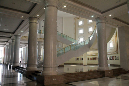 Muzeý ak mermere bürenip, depesinde gögümtil gümmez bina edilendir. Bina üç gatdan ybarat bolup, birinji, ikinji gatynda muzeýiň ekspozisiýasy görkezilýär. Ikinji gatda muzeýiň işgärleri üçin iş otaglary hem-de 215 orunlyk mejlisler otagy ýerleşýär. Üçünji gatda kitaphana we okalga zaly bar. Muzeýiň iň aşaky, ýarym ýerzemin gatynda bolsa muzeý esbaplary saklanylýan otaglar, barlaghanalar we eserleriň durkuny dikeldiş ussahanalary ýerleşýär. Muzeýde jemi 16 müňe golaý muzeý gymmatlygy saklanylýar. Ekspozisiýa meýdany 4832 inedördül metr bolan bu muzeýde 133 hünärmen işleýär.