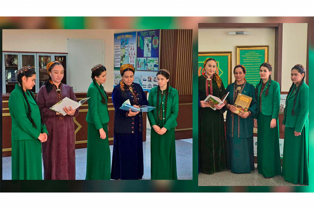 14.03.2025Türkmenistanyň Döwlet medeniýet merkeziniň Döwlet muzeýiniň guramagynda Aşgabat Maliýe-ykdysady orta hünär okuw mekdebinde «Parahatdyr Diýarym, eziz Türkmenistanym» atly sergi gurnaldy.