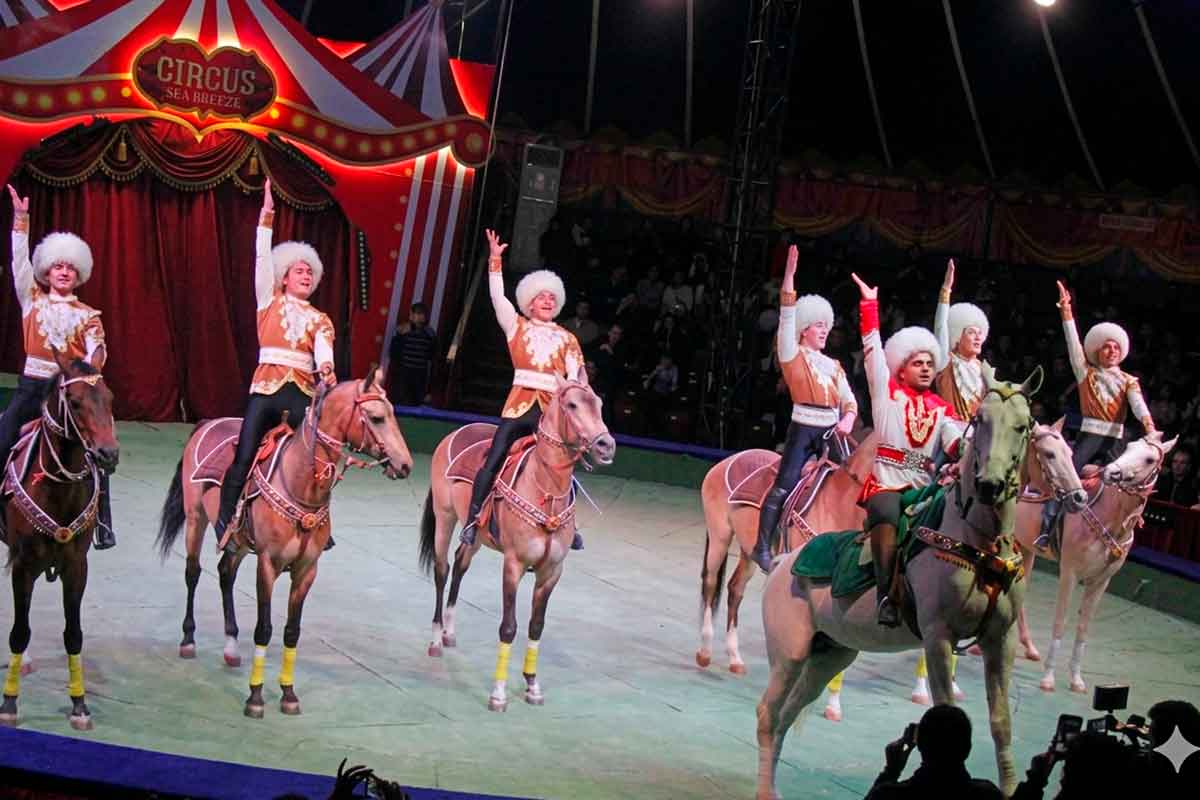 Bu meşhur toparyň Azerbaýjandaky ýokary ussatlyga eýe bolan çykyşlarynyň halkara derejede uly gyzyklanma döredýändigini, Gahryman Arkadagymyzyň atçylyk sportuny ösdürmek babatdaky başlangyçlarynyň häzirki wagtda hormatly Prezidentimiziň parasatly baştutanlygynda has-da rowaçlanýandygyny aýdyň görkezýär. «Circus Sea Breeze» sirkiniň ajaýyp sahnasynda ýurdumyzyň sirk ussatlary tomaşaçylara ahalteke bedewlerinde çylşyrymly akrobatik hereketleri, at üstünde täsin oýunlary hem-de atşynaslyk sungatynyň gözelliklerini görkezýärler. Çapyksuwar bilen bedewiň sazlaşykly hereketi, ahalteke atlarynyň gözelligi, ýyndamlygy azerbaýjanly tomaşaçylary haýrana goýup, olarda ýatdan çykmajak täsirleri galdyrýar. Mundan başga-da, sirk sungatynyň ussatlary dürli sirk žanrlaryndaky çykyşlary görkezýärler. Ýurdumyzyň sirk ussatlarynyň dostlukly ýurtdaky çykyşlary 30-njy marta çenli dowam eder.