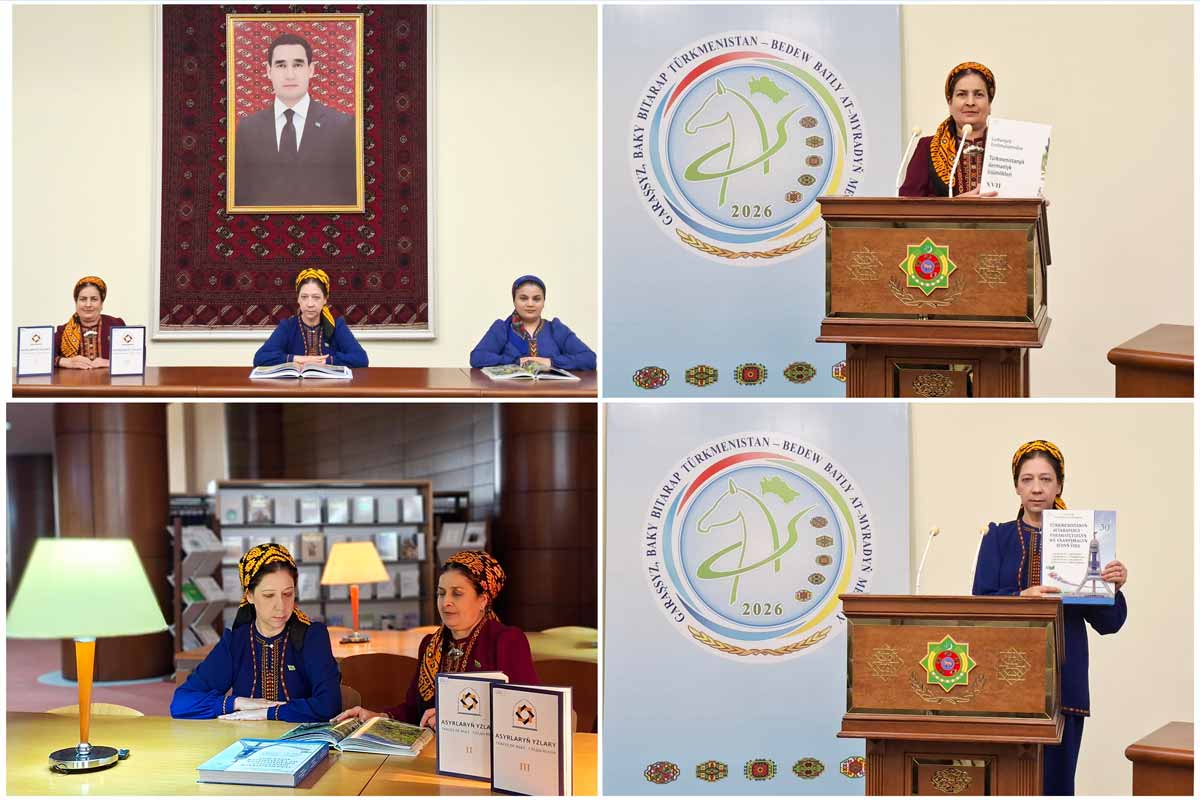 Kitaphana synynda türkmen halkynyň Milli Lideri Gahryman Arkadagymyzyň “Türkmenistanyň dermanlyk ösümlikleri” atly ensiklopedik kitaby, Arkadagly Gahryman Serdarymyzyň “Türkmenistanyň Bitaraplygy – parahatçylygyň we ynanyşmagyň aýdyň ýoly” atly kitaby hem-de “Asyrlaryň yzlary” atly ylmy ýygyndynyň II we III neşirleri bilen tanyşdyryldy. Güneşli Diýarymyzda ösýän ösümlikleriň, miweleriň hersi bir derdiň dermany. Gahryman Arkadagymyzyň “Türkmenistanyň dermanlyk ösümlikleri” atly ensiklopedik kitabynda jana şypa beriji ösümlikleri, miweleri öwrenip, şolaryň her biriniň haýsy keseliň öňüni alýandygy, peýdalanylyşy, himiki düzümi, derman taýýarlanylyşy barada okyjylara jikme-jik maglumatlary ýetirýändigini çykyş edenler nygtap geçdiler.