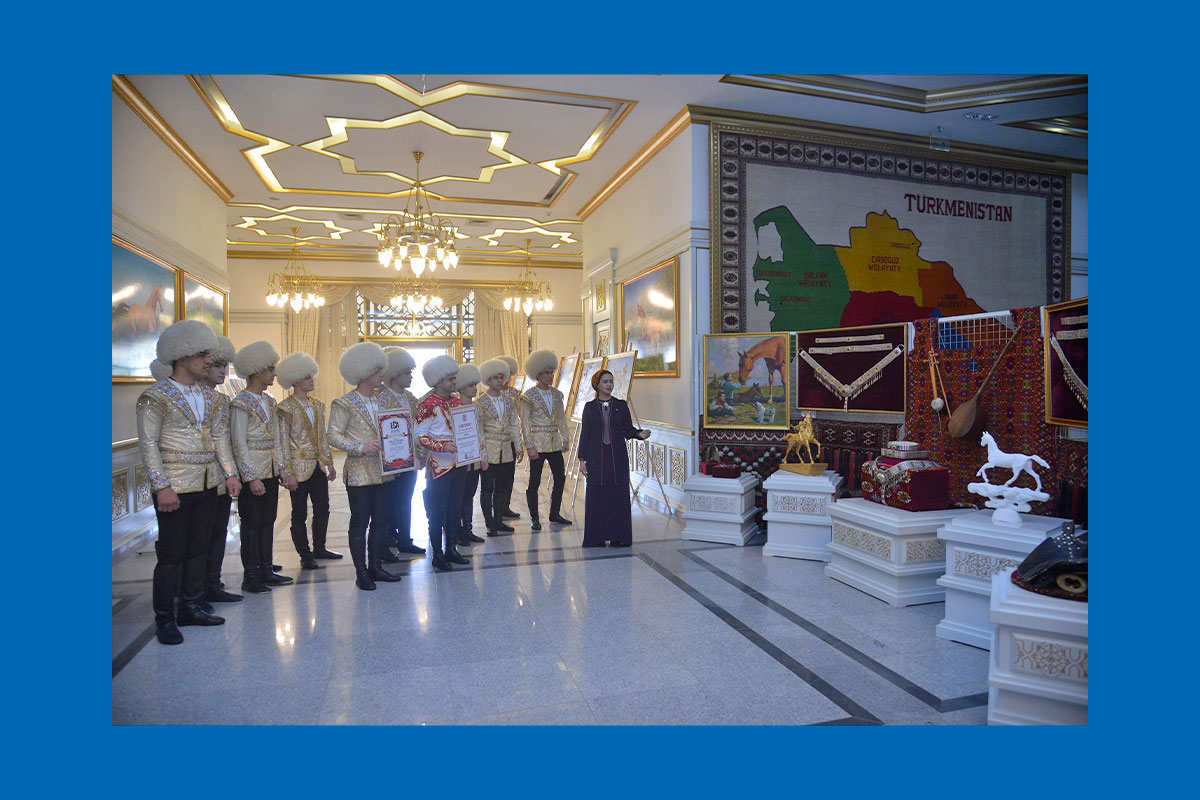 Bedew bady bilen öňe barýan türkmen halkymyzyň her bir güni toý baýramlara, şanly senelere beslenen. Muňa hut şu ýylymyzyň “Garaşsyz, baky Bitarap Türkmenistan – bedew batly at – myradyň mekany” ýyly diýilmegi hem uly şaýatlyk edýär. Türkmen halkynyň milli gymmatlyklarynyň naýbaşysy bolan ahalteke bedewlerine uly hormat we sarpa goýulmagy bilen, halkymyzyň şöhratly taryhynyň has-da müňýyllyklaryň jümmüşinden alyp gaýdýandygy görmek bolýar. Şany dünýä dolan “Galkynyş” milli at üstündäki oýunlar toparynyň üstünlikleri diýseň guwandyryjydyr. Ýaňy ýakynda Monte-Karlo şäherinde geçirilen 48-nji halkara sirk sungaty festiwalynda “Galkynyş” milli at üstündäki oýunlar toparyna sirk sungatyna uly goşandy üçin Bütindünýä sirk federasiýasy hem-de Ýewropa Sirk assosiasiýasy tarapyndan halkara şahadatnamalaryň gowşurylmagy ahalteke bedewlerimiziň dünýädäki at-abraýynyň barha belende göterilýändiginiň aýdyň subutnamasydyr. Şeýle hem ýurdumyzda bedew batly beýik ösüşleriň, taryhy özgertmeleriň ähmiýetini wagyz etmek maksady bilen Lebap welaýatynda “Galkynyş” milli at üstündäki oýunlar toparynyň iş saparyna gelmegi hem-de Lebap welaýat taryhy we ülkäni öwreniş muzeýinden badalga almagy muzeý işgärleriniň buýsanjyny artdyrdy. Bu topar muzeyde myhmançylykda bolup, gadymy mirasy gymmatlyklarymyzy we gurnalan ajaýyp sergimizi uly gyzyklanma bilen synladylar. Halkymyzyň milli mirasyny, milli sungatyny içgin öwrenip we ony halka wagyz etmekde giň ýol açan Türkmen halkynyň Milli Lideri Gahryman Arkadagymyzyň, Arkadagly Gahryman Serdarymyzyň janlary sag, ömürleri uzak, alyp barýan il ýurt bähbitli işleri rowana ýollarda rowaç alsyn.