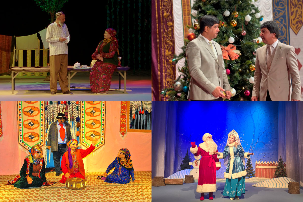 Türkmenistanyň Mollanepes adyndaky talyplar teatry dekabr aýynyň 28, 29,30 hem-de 31-ne «Täze ýyl degişmeleri» atly teatrlaşdyrylan aýdym-sazly, gülküli tomaşany bagtyýar ýaşlara baýramçylyk sowgady eder. Türkmen döwlet gurjak teatry körpe tomaşaçylaryny dekabr aýynyň 27-sine «Çagaly öý bazar», 28-ine «Jüýteniň toýy», 29-na «Çagaly öý bazar», 30-yna hem 31-ne «Täze ýylda körpe nesil şatlanýar» atly aýdym-sazly tomaşa bilen begendirer.