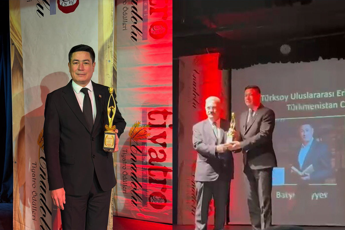 2026-njy ýylyň fewral aýynyň 9-na Ystambul şäherinde TÚRKSOÝ guramasynyň we Anadolu gazetiniň guramagynda Türk dünýäsinde teatr sungatyna goşan goşandy úçin sungat ussatlaryny sylaglamak maksady bilen dabara geçirildi. Dabarada Türksoýa agza ýurtlardan saýlanan sungat işgärlerine öz ugurlarynda üstünlikli işleri üçin baýraklar gowşuryldy. Bu dabarada biziň ýurdumyzdan Beýik Saparmyrat Türkmenbaşy adyndaky baş Akademiki drama teatrynyň sahna ussady, Türkmenistanyň at gazanan artisti Batyr Çaryýew «Iň gowy aktýor» ugry boýunça baýraga mynasyp boldy. TÜRKSOÝ-yň baş sekratarynyň kömekçisi Seýit Ýusuf oňa ýadygärlik nyşan gowşurdy. Bu dabarada Batyr Çaryýew sungatymyzyň hak Howandary Gahryman Arkadagymyza, Arkadagly Gahryman Serdarymyza döredip berýän mümkinçiliklerini bilen türkmen teatrynyň üstünligi barada aýdyp, ata Watanymyz barada şygyr okap çykyş etdi. Bu bolsa ol ýere gatnaşanlaryň gyzgyn el çarpyşmalary bilen utgaşdy.
