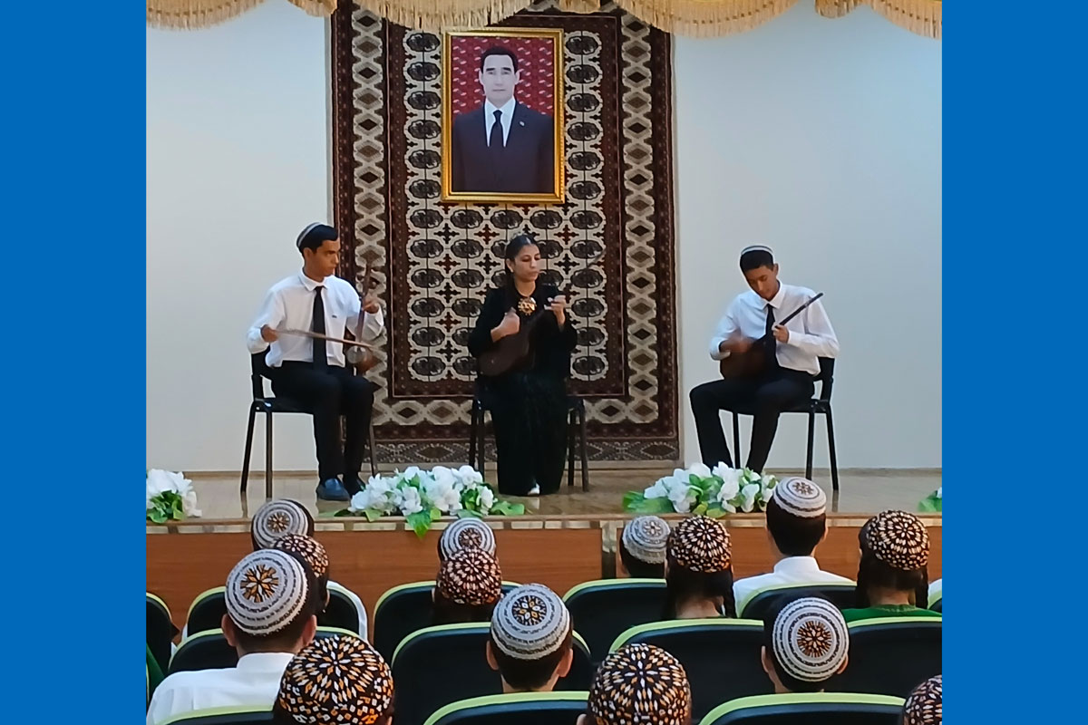 Çäräniň dowamynda Aşgabat şäher Baş bilim müdirliginiň 132-nji daşary ýurt dillerini ýöriteleşdirilen orta mekdebiniň okuwçylarynyň ýerine ýetirmeginde aýdym-sazlar ýaňlandy.