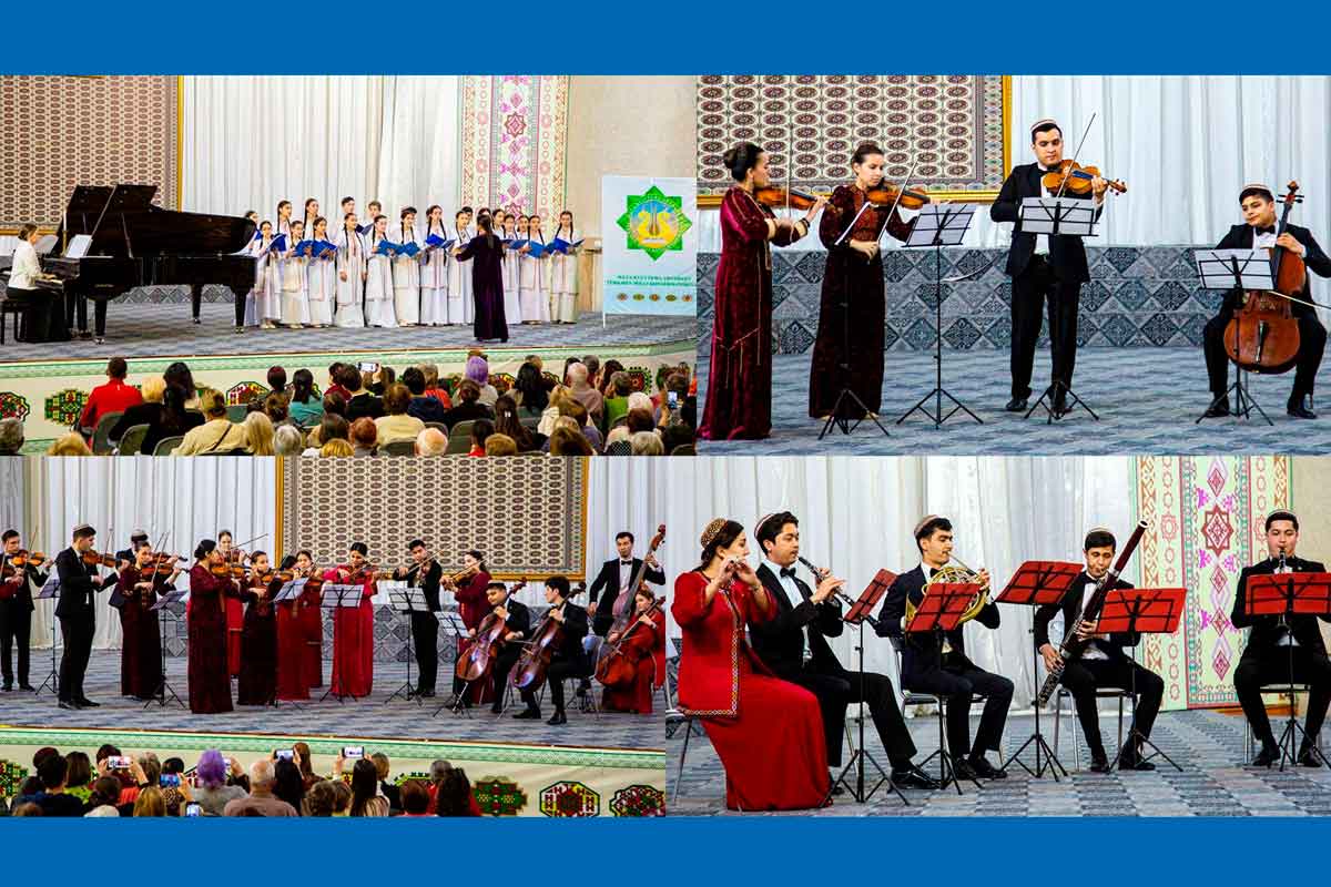 Konsertiň dowamynda “Sonata C-dur” Umumy fortepiano kafedrasynyň uly mugallymy Ýelena Arakelýan we Türkmenistanyň at gazanan artisti Wladimir Mkrtumow bilelikde ýerine ýetirdiler. Soňra 4-nji sazçylyk mekdebiniň “Saýrak bilbiller” hor toparynyň ýerine ýetiren “Ave verum”, “Harplyk” eserleri täsirli boldy. Dabarada “Figaronyň öýlenişi” operasyndan Kerubinonyň ariýasyny Türkmenistanyň Prezidentiniň “Türkmeniň Altyn asyry” bäsleşiginiň ýeňijisi Bahar Durdyýewa, şeýle-de “Don Zuan” operasyndan duet Begenç Gaýypow bilelikde ýerine ýetirdiler.