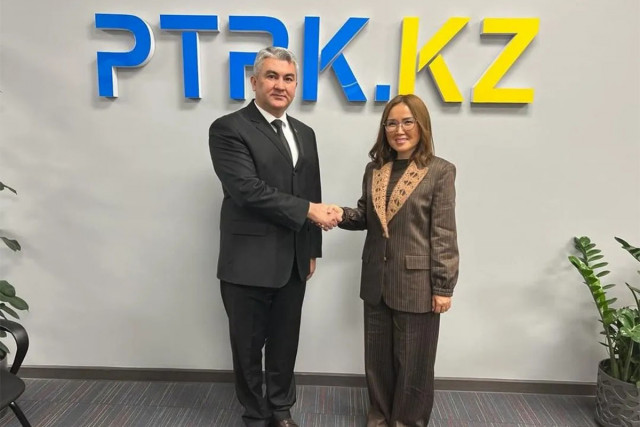 16.11.2023Astana şäherinde Türkmenistanyň Gazagystandaky ilçisi Batyr Rejepow bilen Gazagystan Respublikasynyň Prezidentiniň Teleradiotoplumynyň Baş direktory Rauşan Kajibaýew bilen duşuşdy.