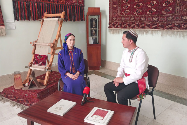 Türkmenistanyň Şekillendiriş sungaty muzeýinde ýetip gelýän Türkmen halysynyň baýramy hem-de Aşgabat şäheriniň güni mynasybetli söhbetdeşlik guraldy. Söhbetdeşligi «Miras» teleýaýlymynyň alyp baryjysy Merdan Mädalyýew alyp bardy.