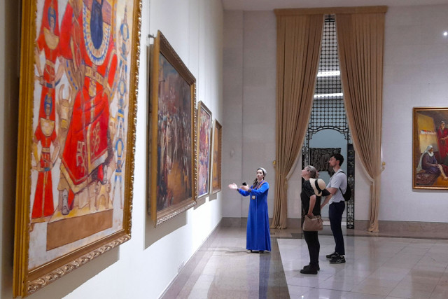 Türkmenistanyň Şekillendiriş sungaty muzeýine Britaniýanyň we daşary ýurtlaryň syýahatçylary geldi. Türkmenistanyň Şekillendiriş sungaty muzeýiniň esasy usulçysy Jeren Pallykowa muzeýe gelen daşary ýurt syýahatçylara iňlis dilinde gezelenç geçirdi. Syýahatçylar muzeýiň döredijilik işlerini ýagty we gyzykly gördüler. Käbir taryhy we durmuşy gürrüňler syýahatçylarda ýatdan çykmajak pursatlary galdyrdy.