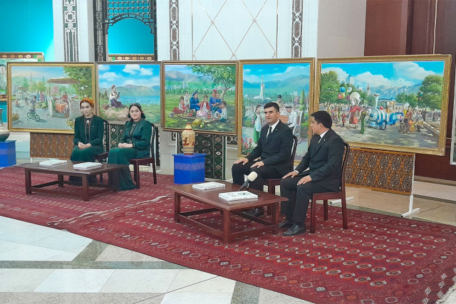 25.04.2025«Halkara Parahatçylyk we ynanyşmak» ýylynda Türkmen bedewiniň milli baýramy mynasybetli Türkmenistanyň Şekillendiriş sungaty muzeýinde Aşgabat şäheriniň Berkararlyk etrap häkimligi, Türkmenistanyň Magtymguly adyndaky Ýaşlar guramasynyň Aşgabat