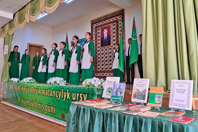09.05.2025Türkmenistanyň Bazar Amanow adyndaky döwlet çagalar kitaphanasy, Aşgabat şäheriniň № 51-nji orta mekdebinde «Beýik ýeňşiň şanyna» atly Beýik Ýeňişiň 80 ýyllygyna bagyşlap mekdep okuwçylarynyň gatnaşmagynda dabaraly çäre geçirildi.