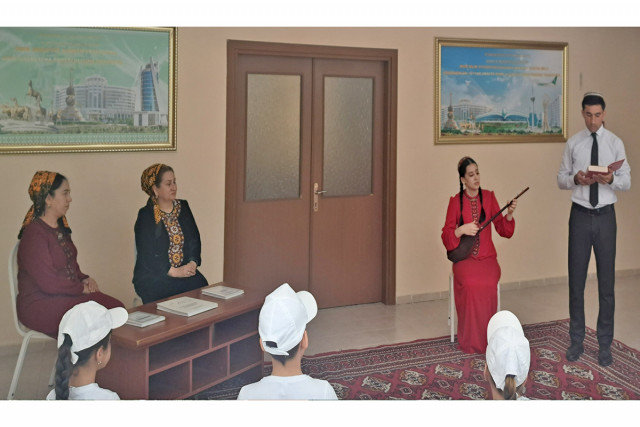 21.06.2024Aşgabat şäher medeniýet müdirliginiň Merkezleşdirilen kitaphanalar ulgamynyň «Mollamurt» adyndaky kitaphana şahamçasy bilen Maýa Kulyýewa adyndaky Türkmen milli koserwatoriýasynyň bilelikde guramagynda «Türkmen medeniýeti dünýä ýol açýar» ady bilen wagyz-nesihat çäresi geçirildi.