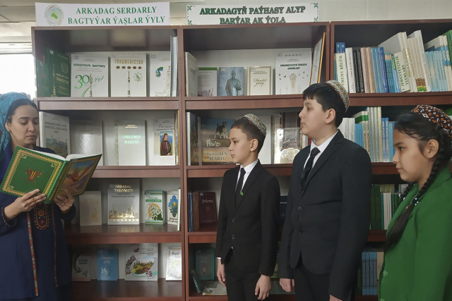 01.03.2023Aşgabat şäher medeniýet müdirliginiň Merkezleşdirilen kitaphanalar ulgamynyň Durdy Gylyç adyndaky kitaphana şahamçasy, 130-njy ýöriteleşdirilen orta mekdebi bilen bilelikde gurnamagynda “Jahana çykaryp ýaşlaryň sesin, Baýdak deý göterip ýurt mertebesin” ady bilen wagyz-nesihat çäre geçirildi.