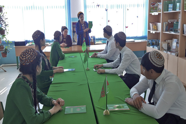 19.05.2022Aşgabat şäher medeniýet müdirliginiň Merkezleşdirilen kitaphanalar ulgamynyň Gurbannazar Ezizow adyndaky kitaphana şahamçasynyň gurnamagynda 132-nji orta mekdepde “Ýaşyl tugum-parahatlyk baýdagy” ady bilen wagyz-nesihat çäresi geçirildi.