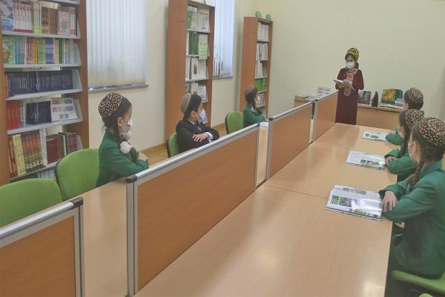 18.03.2022Aşgabat şäher medeniýet müdirliginiň Merkezleşdirilen kitaphanalar ulgamynyň Kerim Gurbannepesow adyndaky kitaphana şahamçasynyň 90-njy orta mekdepde “Pähim-paýhas ummany, Arkadagyň kitaplary ” ady bilen