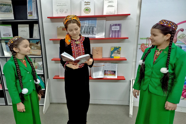 17.03.2022Aşgabat şäher Medeniýet müdirliginiň Merkezleşdirilen kitaphanalar ulgamynyň Aman Kekilow adyndaky kitaphana şahamçasy bilen 7-nji çagalar sungat mekdebiniň bilelikde gurnamagynda Bagtyýarlyk etrap Medeniýet