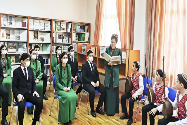 22.02.2022Türkmenistanyň Bazar Amanow adyndaky çagalar kitaphanasy Aşgabat şäherindäki “Bagtyýar nesiller” atly 74-nji orta mekdebi bilen bilelikde “Çagalaryň söýgüli şahyry”atly ýazyjy şahyr Gurban Çöliýewiň d.g 85-ýyllygy mynasybetli