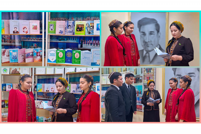 12.03.2025Türkmenistanyň Döwlet medeniýet merkeziniň Döwlet kitaphanasynyň Sungat bölümi Maýa Kulyýewa adyndaky Türkmen milli Konserwatoriýasynyň ýanyndaky Daňatar Öwezow adyndaky Türkmen Döwlet ýörite sazçylyk mekdebinde