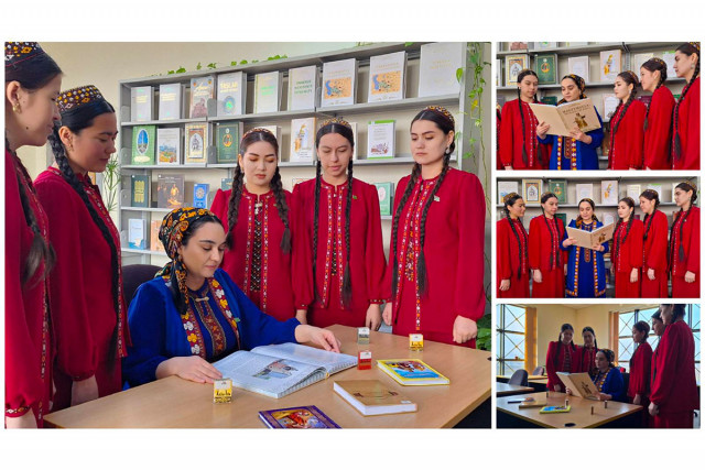 18.02.2025Aşgabat şäher medeniýet müdirliginiň Merkezleşdirilen kitaphanalar ulgamynyň Ata Gowşudow adyndaky kitaphana şahamçasy, Aman Kekilow adyndaky mugallymçylyk mekdebiniň bilelikde guramagynda «Medeni mirasymyz–ruhy baýlygymyz» ady bilen aýdym-sazly söhbetdeşlik geçirildi.