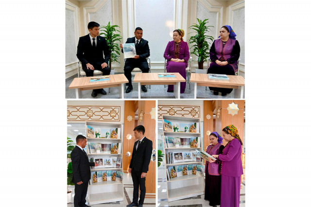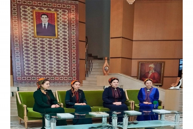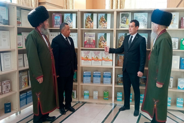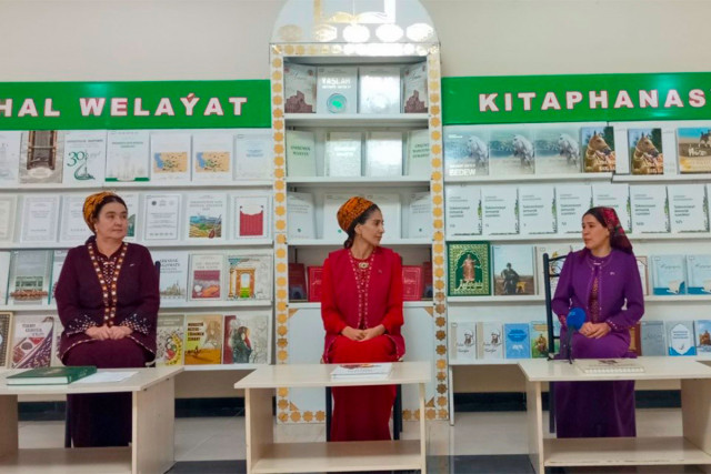 03.02.2025Ahal welaýat kitaphanasynyň gurnamagynda Hormatly Prezidentimiziň ýaňy-ýakynda Ministrler Kabinetiniň sanly ulgam arkaly geçiren nobatdaky mejlisinde kabul eden «Türkmenistanyň kitaphana ulgamyny ösdürmegiň 2025-2029-njy ýyllar üçin Döwlet maksatnamasyny» tassyklamak hakynda gol çeken Kararyna bagyşlap