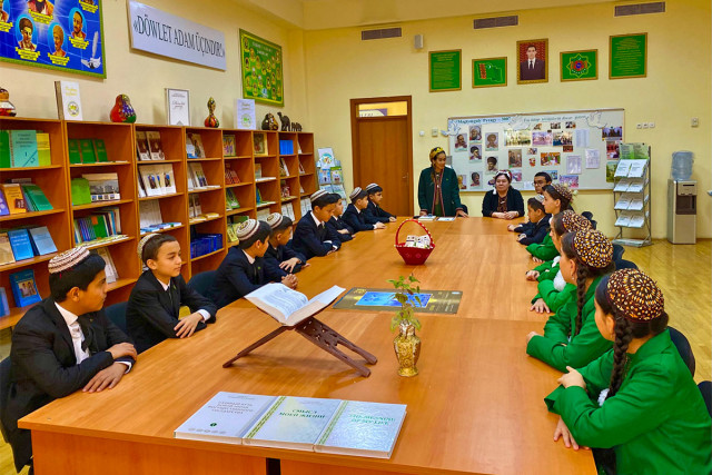 26.11.2024Türkmenistanyň Bazar Amanow adyndaky döwlet çagalar kitaphanasy ýaňy-ýakynda Aşgabat şäheriniň 76-njy orta mekdebinde Türkmenistanyň halk bagşysy Magtymguly Garlynyň (Çuwal bagşy) doglan gününiň 135 ýyllygyna bagyşlap