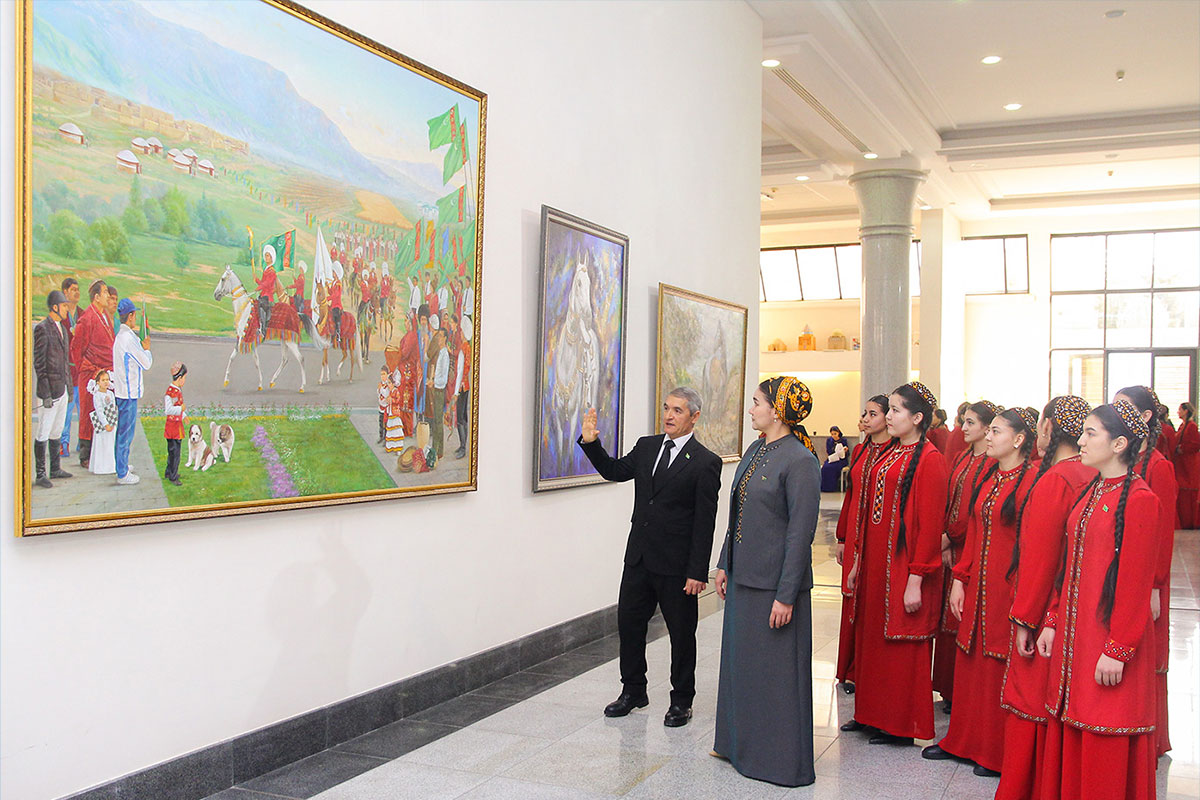 2026-njy ýyl «Garaşsyz baky bitarap Türkmenistan – bedew batly at-myradyň mekany» ýyly atly şygarymyz bilen ýurdumyzda medeniýet we sungat ulgamy gün-günden bedew batly ösüşlere eýe bolýar. Ýylyň şygaryna esaslanyp, biziň ýokary okuw jaýymyzyň sergiler jaýynda «Bedew batly Watanym» atly Türkmenistanyň Döwlet çeperçilik akademiýasynyň Altyn gaznasyndaky uçurymlaryň we talyp ýaşlaryň eserlerine bagyşlanyp ajaýyp sergi açyldy. Türkmenistanyň Döwlet çeperçilik akademiýasynyň Altyn gaznasynda saklanylýan uçurymlaryň eserleri milli sungatyň ösüş ýoluny, ýaş zehinleriň döredijilik gözleglerini we döwür bilen baglanyşykly çeper pikirlenmäni aýdyň görkezýän gymmatly çeşmedir. Serginiň aýratynlygy diňe bir uçurym ýaşlaryň däl, eýsem häzirki wagtda bilim alyp ýören talyplaryň hem tapawutlanan eserleriniň görkezilmegidir. Bu ýagdaý biziň ýokary okuw jaýymyzda döredijilik işiniň yzygiderli dowam edýändigini, ýaş zehinleriň okuw döwründen başlap sungat meýdançasynda öz sözlerini aýdyp bilýändiklerini görkezýär. Sergide görkezilýän eserlerde türkmen topragynyň gözelligi, bedew atyň mukaddes keşbi, halkyň ruhy kuwwaty we ata Watana bolan söýgi esasy tema hökmünde öňe çykýar. Bedew at bu ýerde diňe bir haýwan däl-de, eýsem erkinligiň, güýç-kuwwatyň we milli buýsanjyň nyşany hökmünde beýan edilýär.