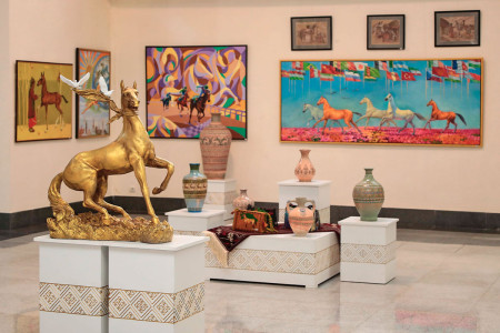 «Halkara parahatçylyk we ynanyşmak» ýylynda Türkmenistanyň Prezidentiniň «Türkmen bedewiniň milli baýramy mynasybetli bäsleşikleri geçirmek hakyndaky» Kararyna laýyklykda ahalteke atlarynyň gözelligini şekillendiriş we amaly-haşam sungatynyň eserlerinde, neşir önümlerinde, fotosuratlarda, teleýaýlymlarda çeper beýan etmek ugrunda suratkeşleriň, heýkeltaraşlaryň, halyçylaryň, zergärleriň, fotosuratçylaryň, neşirýat işgärleriniň, dizaýnerleriň, teleoperatorlaryň arasyndaky döredijilik bäsleşigine hödürlenen Türkmenistanyň Döwlet çeperçilik akademiýasynyň, ýörite çeperçilik mekdebiniň halypa mugallymlarynyň we talyp ýaşlarynyň, Türkmenistanyň Suratkeşler birleşiginiň agzalarynyň, erkin suratkeşleriň döreden sungat eserleri özboluşlylygy bilen tapawutlandy. Döredijilik bäsleşigine hödürlenen 300-e golaý sungat eserleriniň iň naýbaşylary saýlanyp, eminler topary tarapyndan ýokary baha berildi.